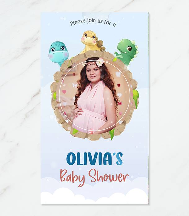 Cute Dino Safari Theme Baby Shower Invitation : Embark on a roarsome adventure with our Cute Dino Safari Theme Baby Shower Invitation! Adorable dinosaurs, lush greenery, and playful safari vibes set the perfect tone to celebrate the little explorer on the way. Join us for a day of fun, laughter, and cherished memories!