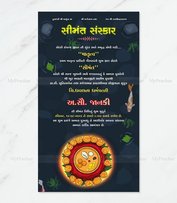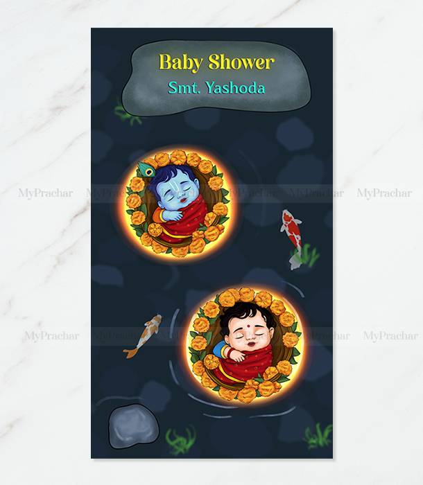 Baby Radha Krishna Gujarati Baby Shower Theme Invitation: Celebrate the joy of motherhood with our enchanting Baby Radha Krishna-themed baby shower invitation, blending divine charm and elegance for your special day.