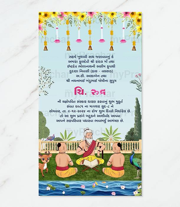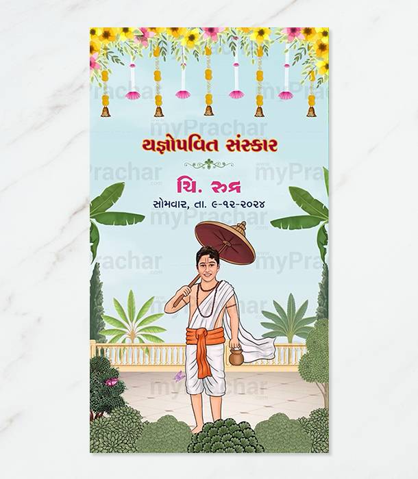 Elegant and culturally-rich Janoy/Janeu/Upnayan Sanskar and Yagnopaveet invitation card designs. Customize traditional invitations with intricate details, perfect for celebrating sacred Hindu rituals and rites of passage.
