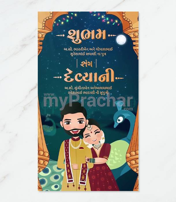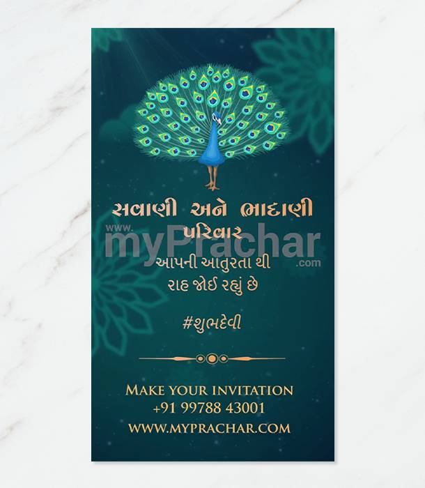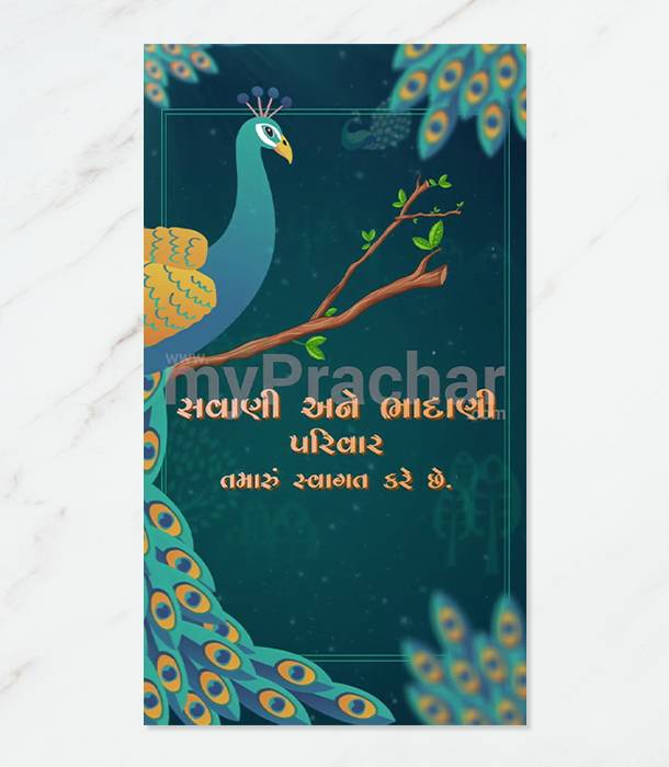 Elegant Peacock-Themed Indian Wedding Invitation Cards in Surat, Gujarat. Celebrate your special day with our beautifully crafted invitations, inspired by the majestic peacock, symbolizing grace, beauty, and love. Perfect for adding a traditional yet vibrant touch to your wedding celebrations.