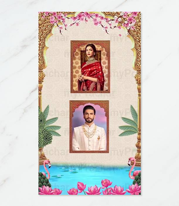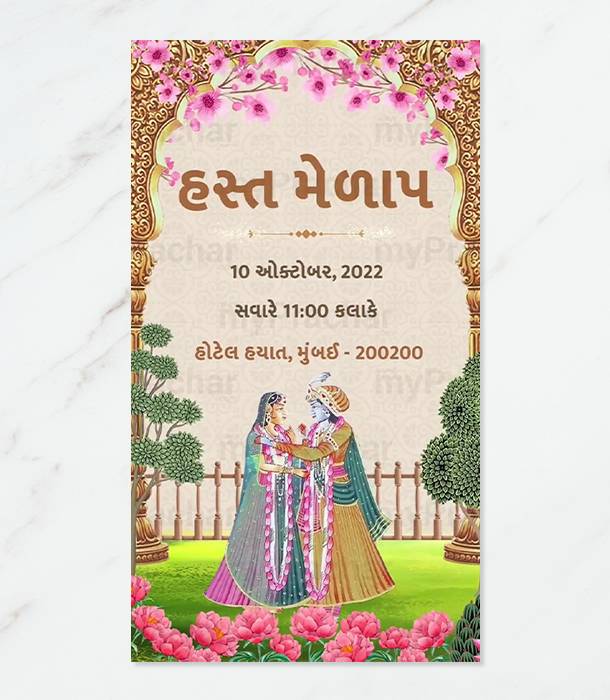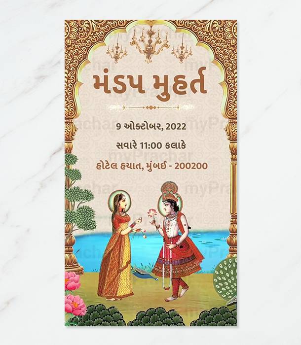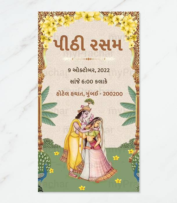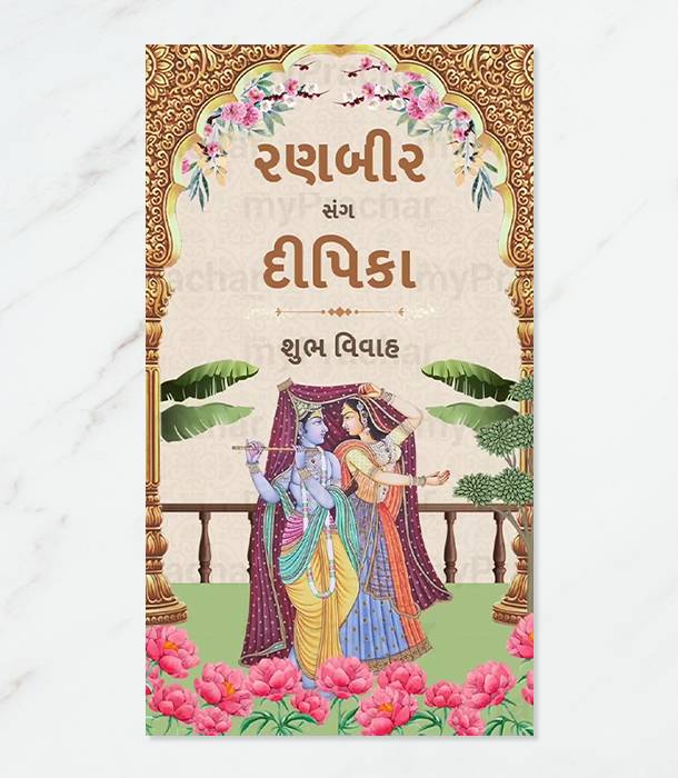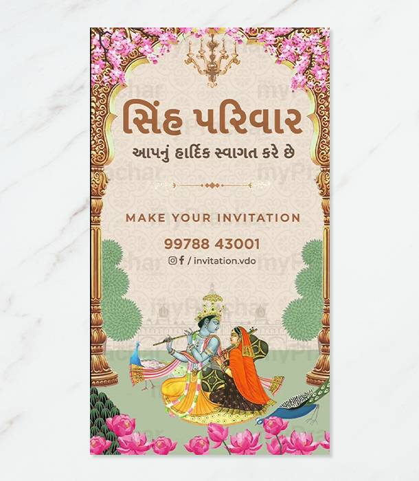 Discover our ‘Pichwai Krishna Theme’ Indian wedding invitation card template, featuring intricate Pichwai art and divine Krishna motifs. Perfect for a traditional and elegant Indian wedding, this customizable template offers a blend of cultural heritage and modern design to make your special day unforgettable.