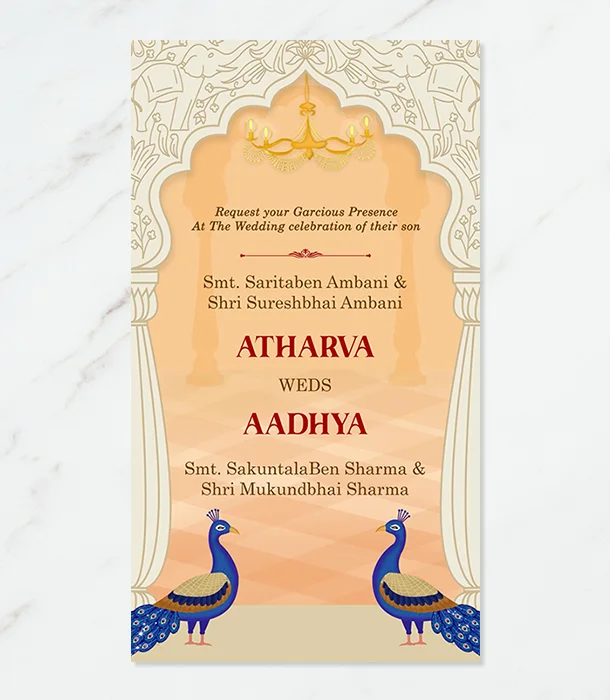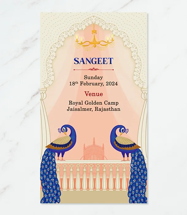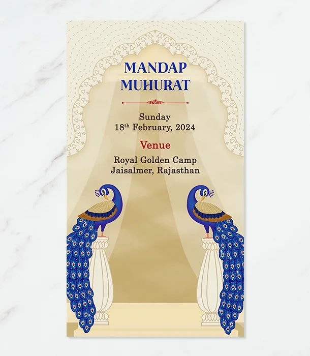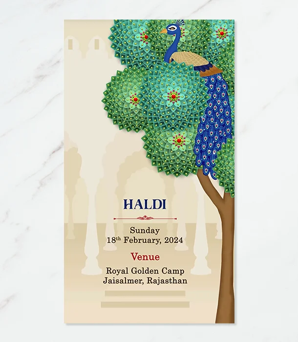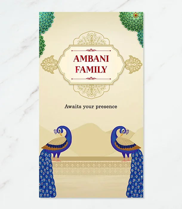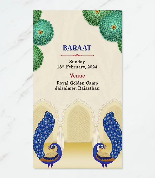 Invite elegance with our luxurious sparkling peacock theme Indian wedding invitation card. Custom-designed to add grandeur and charm to your special day.