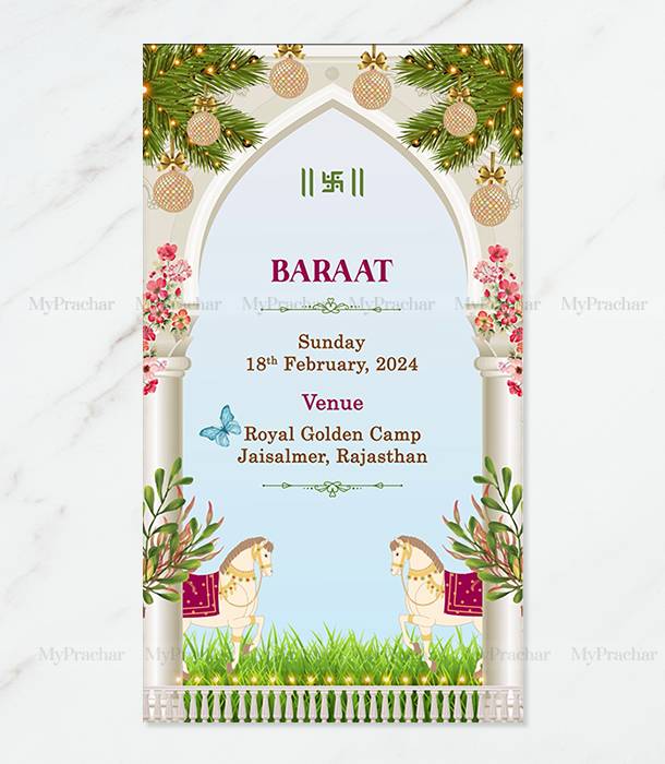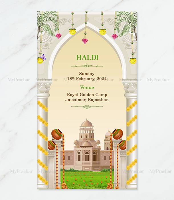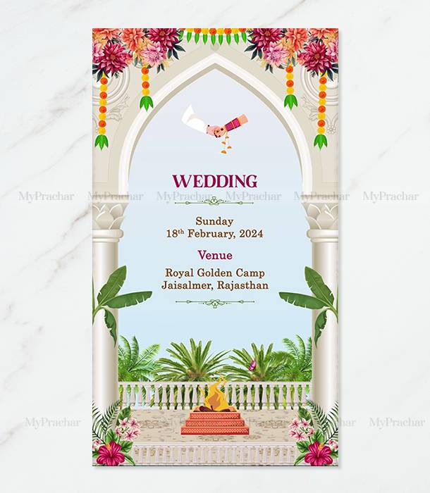 Celebrate love in royal style with the Utsav Mahal Invite. This elegant wedding card blends traditional charm with majestic palace-inspired design, perfect for your grand celebration.