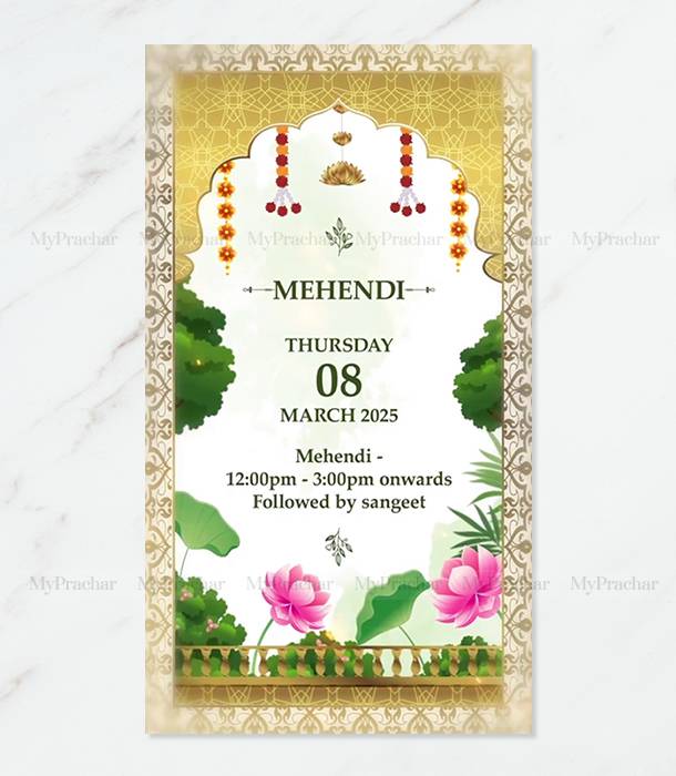 Celebrate your union with a touch of tradition and elegance. Inspired by the intricate beauty of Lotus Bloom, this wedding invitation weaves together blooming gardens, divine motifs, and vibrant colors to create a timeless first impression.