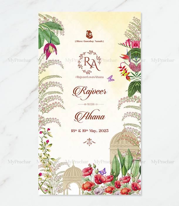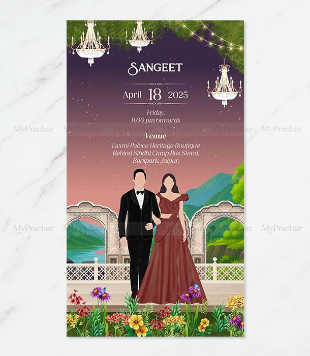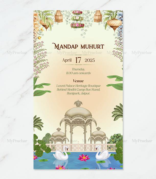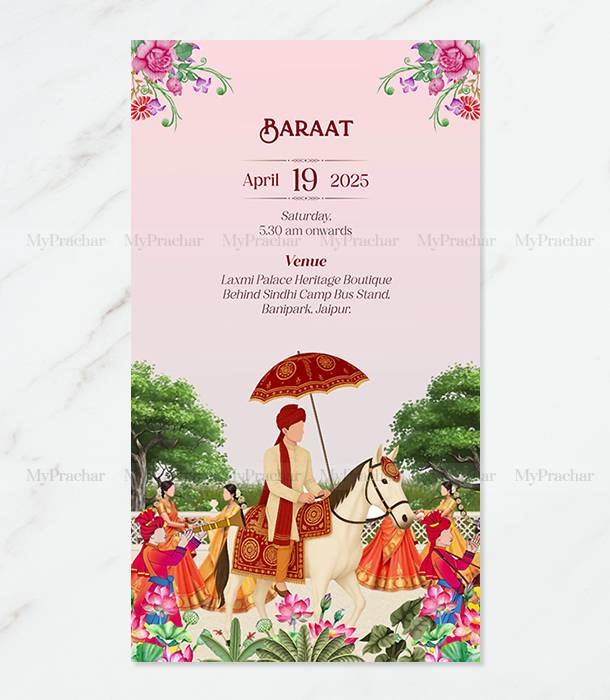 Step into regal splendor with this Rajasthani Royal Palace Wedding Invitation — adorned with heritage art, royal architecture, and timeless elegance.