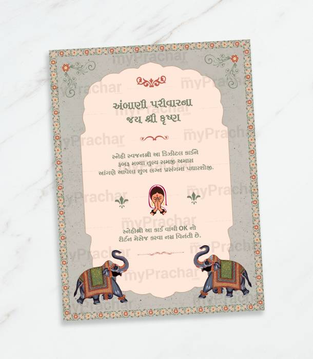 Invite guests to your special day with our Traditional Indian Theme Wedding Invitation Card, available in Gujarati, Hindi, and English. Perfect for celebrating cultural heritage and creating lasting memories.