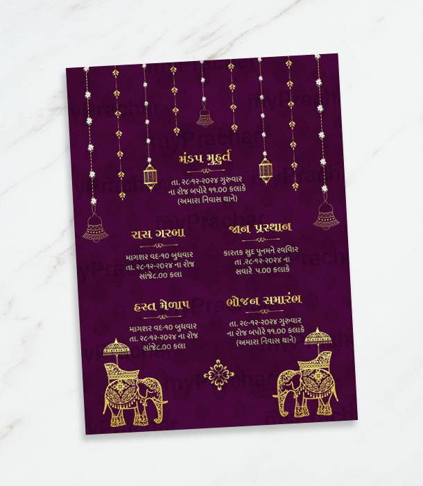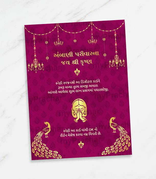 Invite guests to your special day with our Traditional Indian Pink Wedding Invitation Card, available in Gujarati, Hindi, and English. Perfect for celebrating cultural heritage and creating lasting memories.