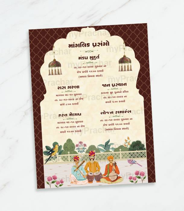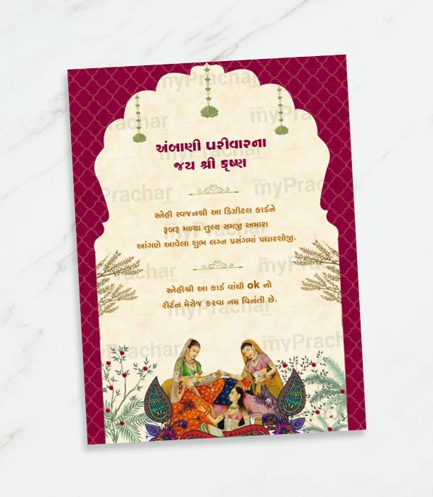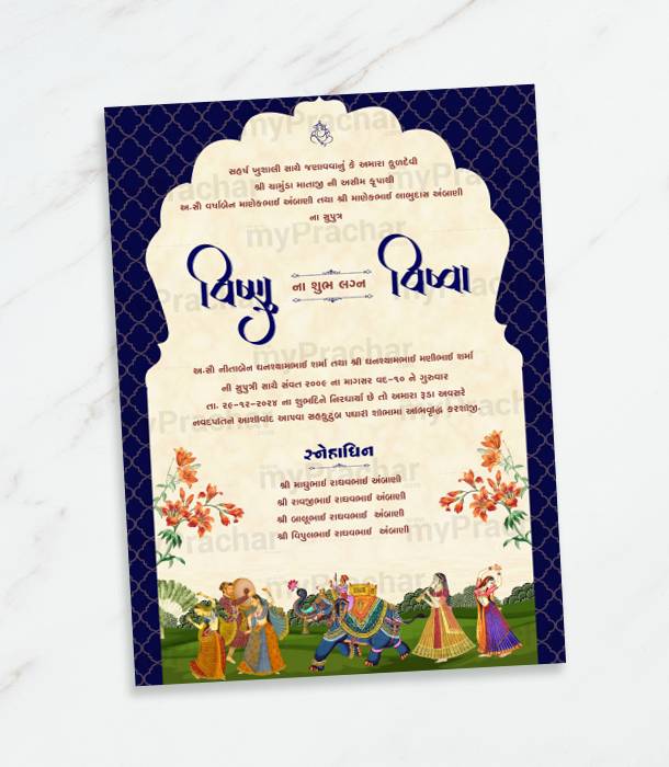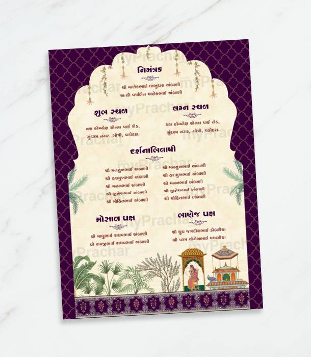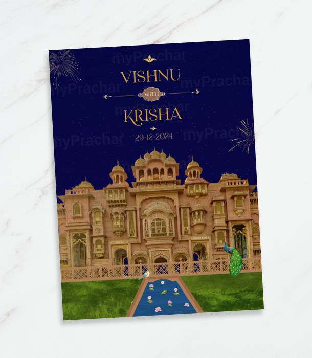 Invite guests to your special day with our Traditional Indian Roal Palace Theme Wedding Invitation Card, available in Gujarati, Hindi, and English. Perfect for celebrating cultural heritage and creating lasting memories.