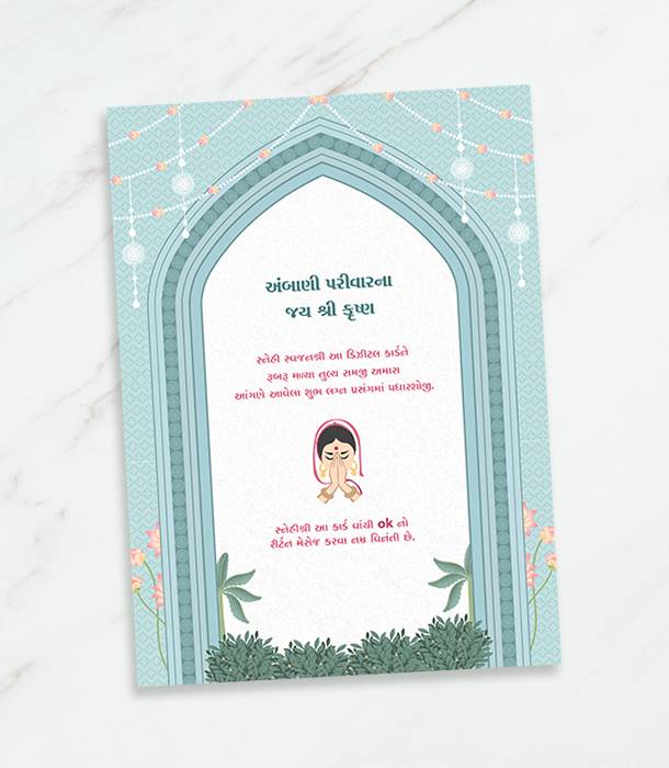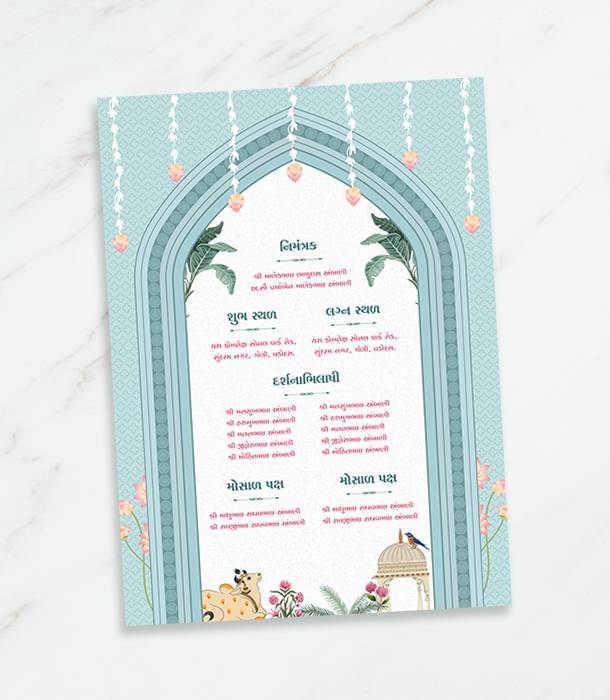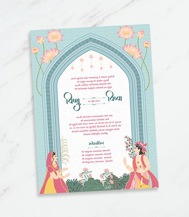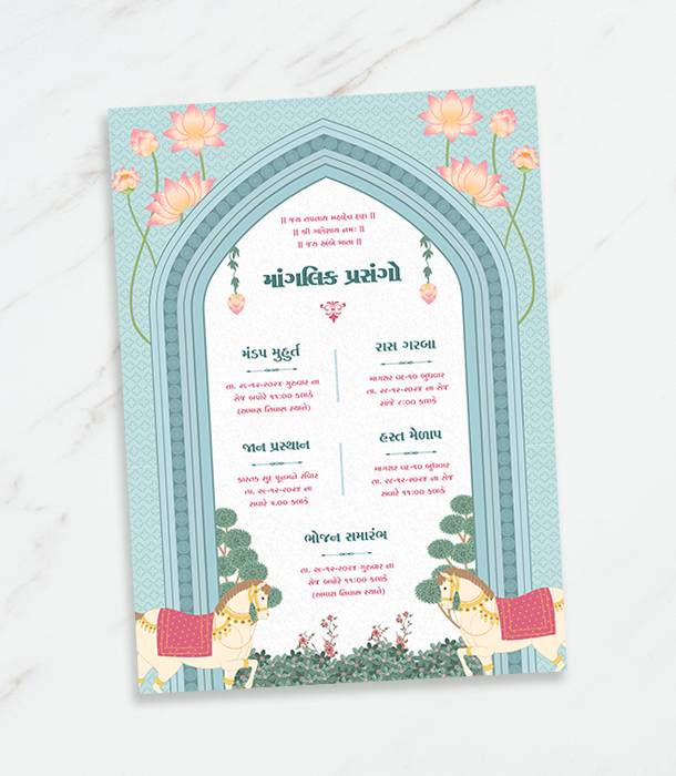 Traditional Wedding Invitation Card with Gujarati, Hindi, and English Language Options
