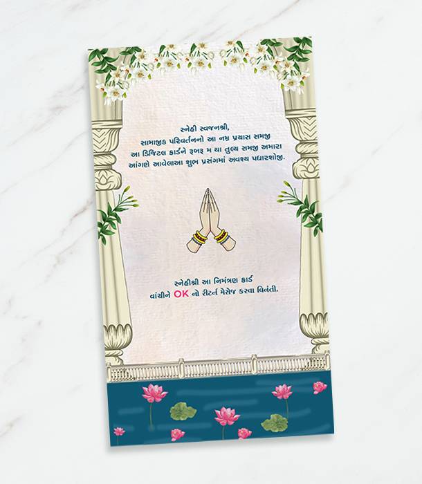 Invite guests to your special day with our Traditional Indian Wedding Invitation Card, available in Gujarati, Hindi, and English. Perfect for celebrating cultural heritage and creating lasting memories.