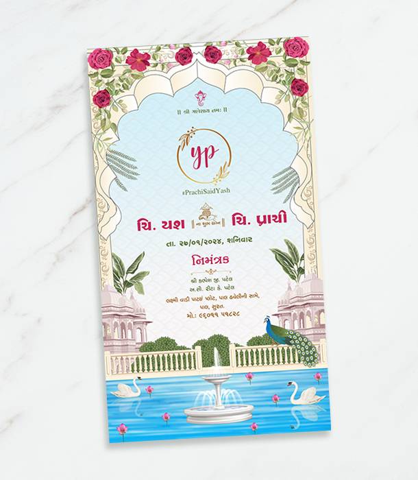 Invite guests to your special day with our Traditional Indian Wedding Invitation Card, available in Gujarati, Hindi, and English. Perfect for celebrating cultural heritage and creating lasting memories.