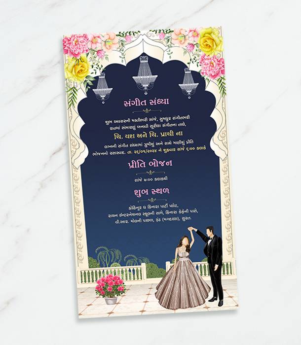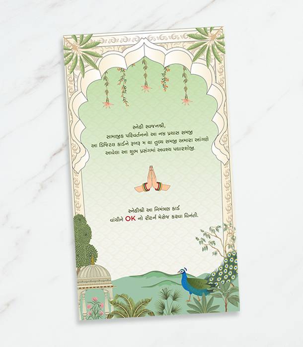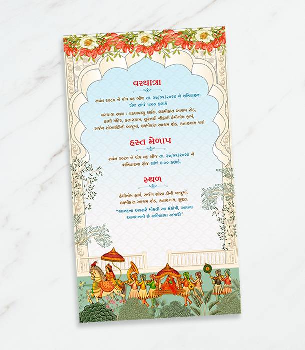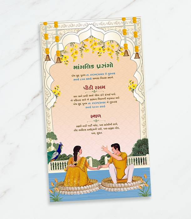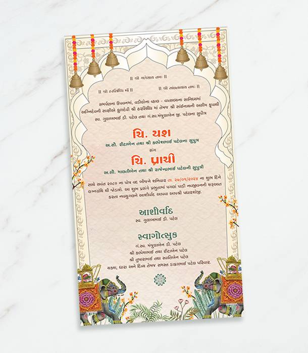 Traditional Wedding Invitation Card with Gujarati, Hindi, and English Language Options