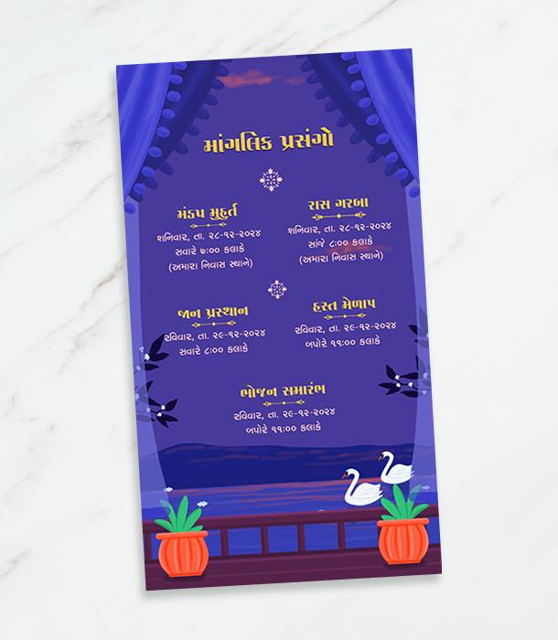 Invite guests to your special day with our Traditional Indian Wedding Invitation Card, available in Gujarati, Hindi, and English. Perfect for celebrating cultural heritage and creating lasting memories.