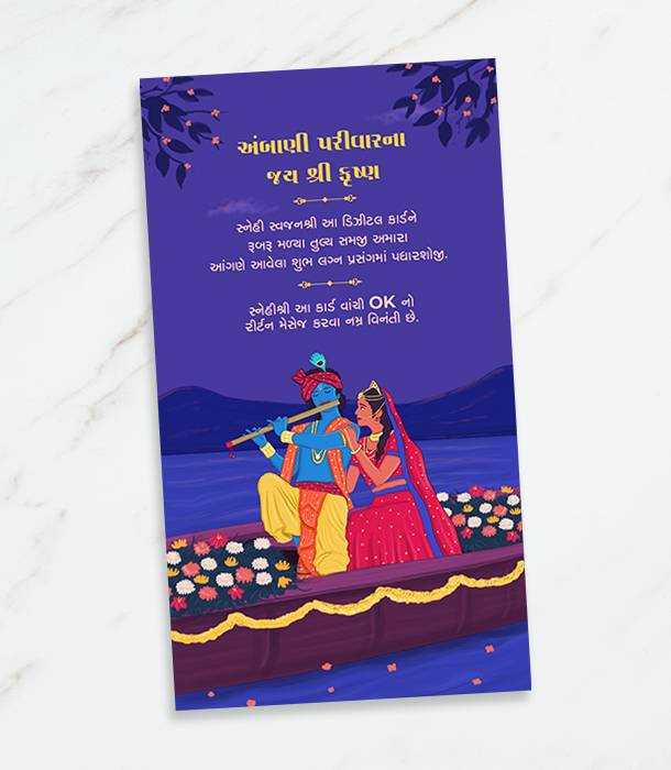 Traditional Wedding Invitation Card with Gujarati, Hindi, and English Language Options
